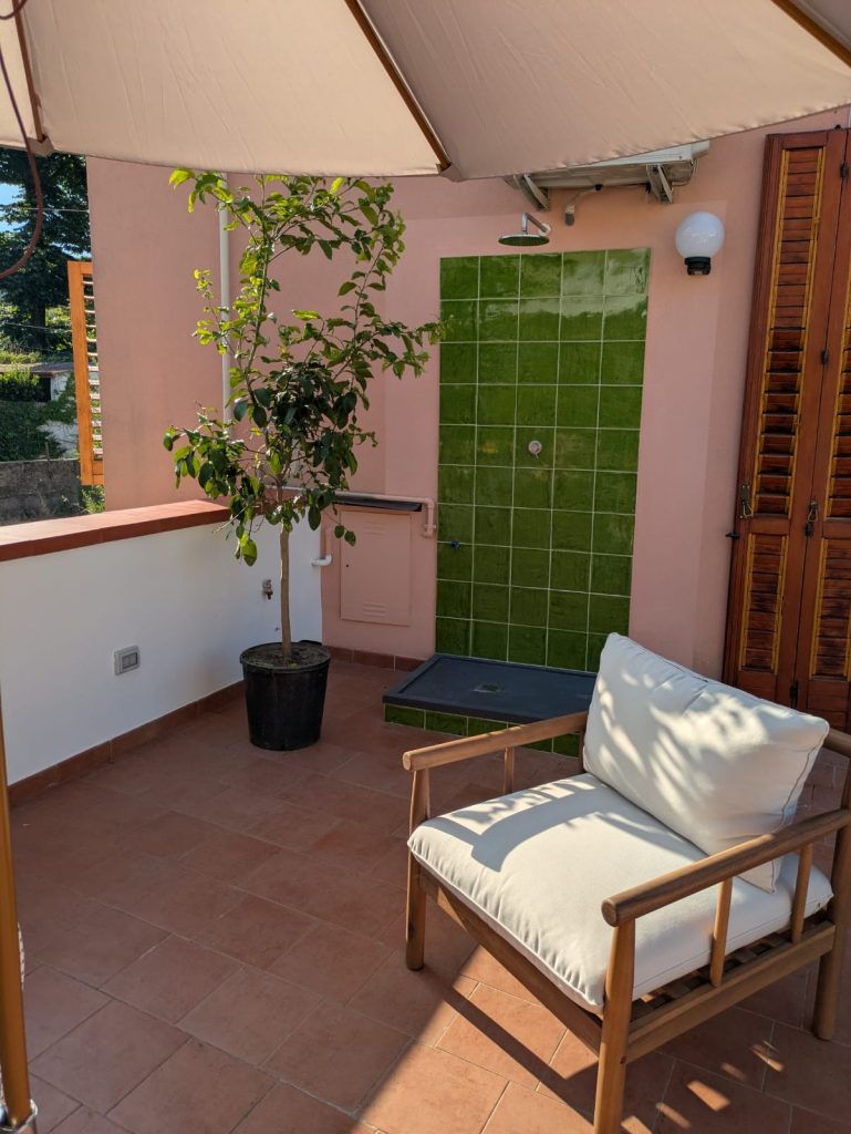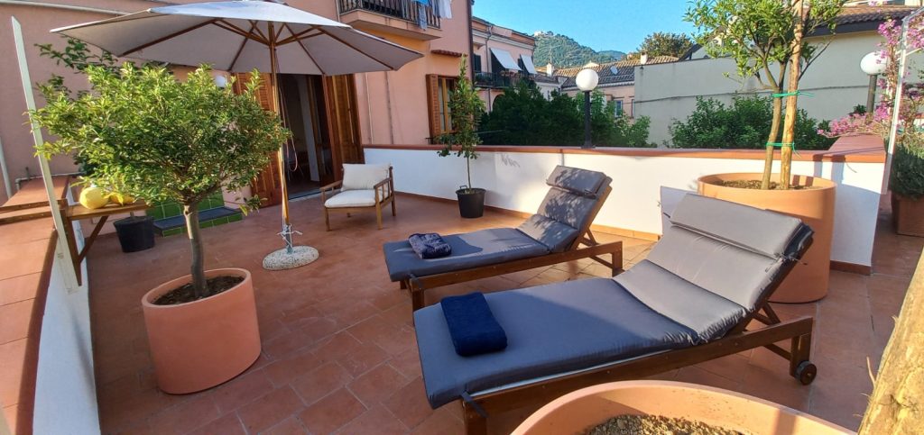 La struttura ha anche 2 terrazzi : uno di circa 50 mq, con un’area solarium perfetta per rilassarsi e una doccia esterna per rinfrescarsi nelle giornate calde. L’altro terrazzo di circa 10mq, adiacente alla cucina, è ideale per cene romantiche al fresco con vista sulle montagne cavesi.